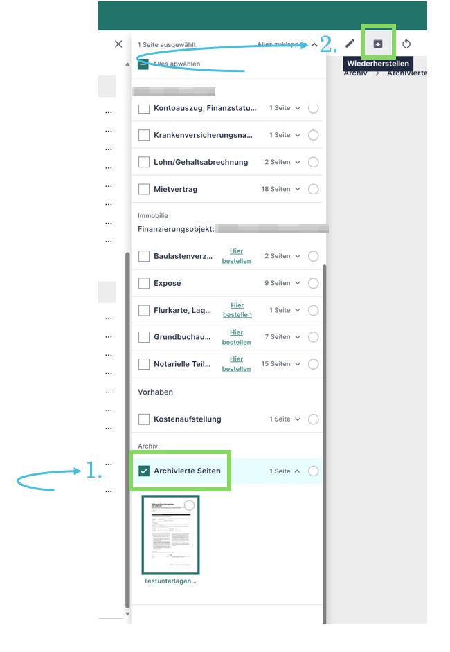 4. Wie kann ich Unterlagen archivieren und wiederherstellen.