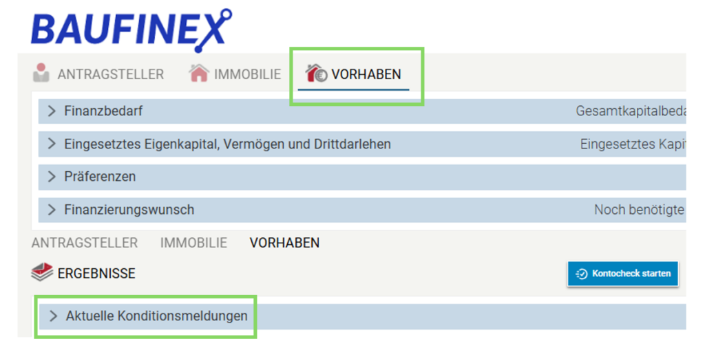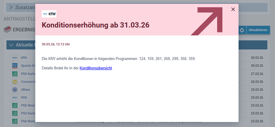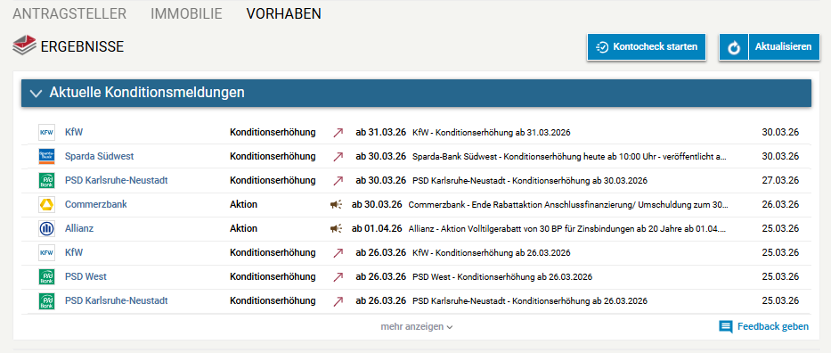 Wusstest du, dass du im Reiter “Vorhaben” direkt die Konditionsmeldungen der Banken einsehen kannst?